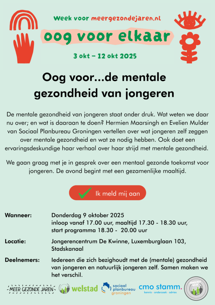 Deze bijeenkomst wordt georganiseerd in het kader van de Week van de Meer Gezonde Jaren van 3 tot en met 12 oktober 2025.