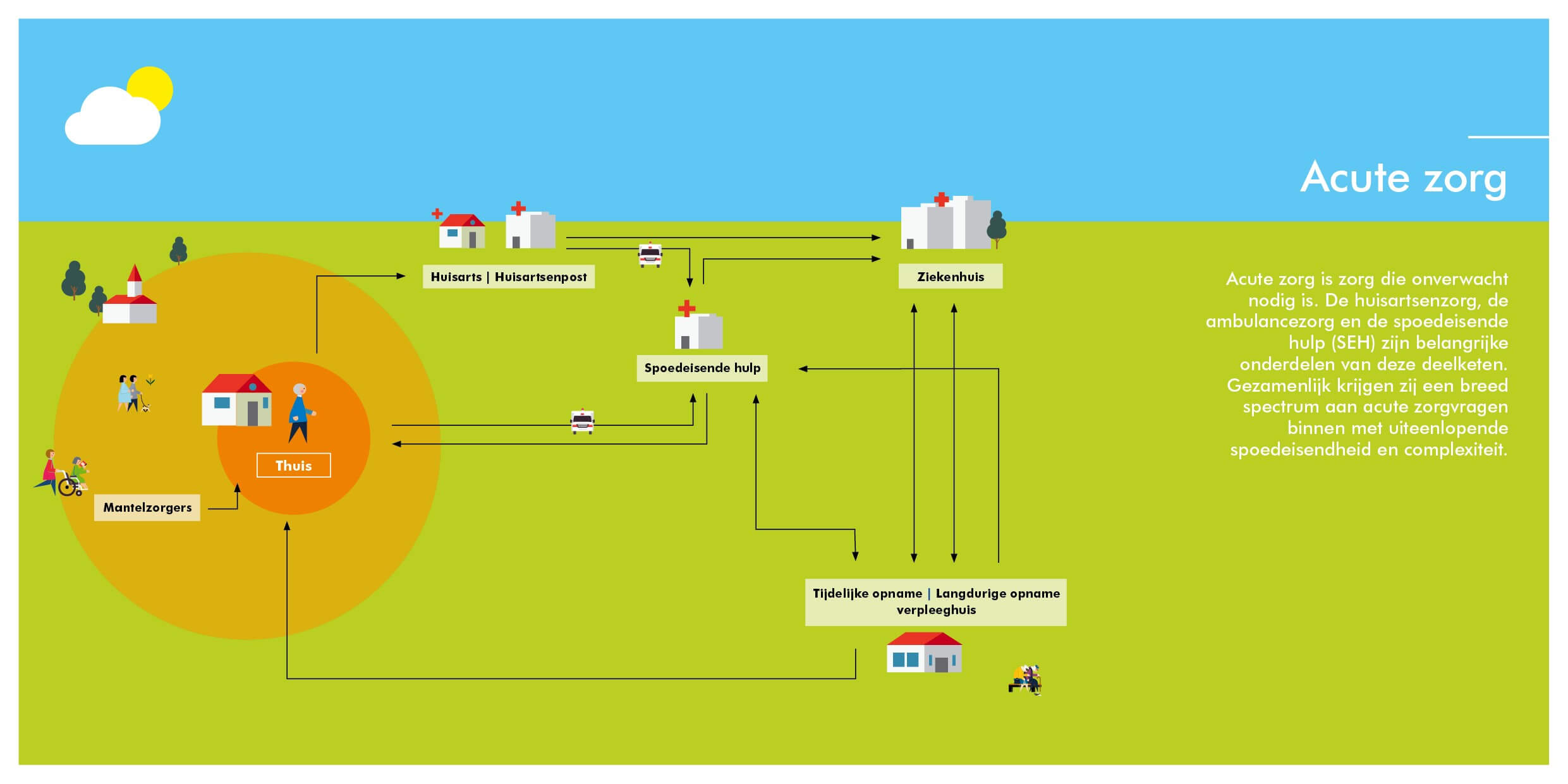 Van belang is te weten wat de situatie is: wat speelt er, wat werkt en waar knelt het? Wat zijn de belangrijkste opgaven voor de keten van zorg en ondersteuning? En waar wordt het kritisch? Om hier meer zicht op te krijgen voerden wij een quick scan uit. Dat levert een eerste impressie op basis van signalen uit het veld en deskresearch. Lees de resultaten onder de uitvouwlinkjes onder de infographic.
